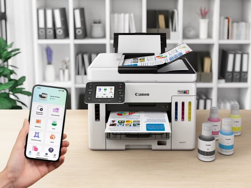 Dużym atutem tego modelu jest ekosystem programowy Canon. Aplikacja Canon PRINT umożliwia drukowanie, skanowanie, kopiowanie i łączenie się z chmurą, co zwiększa wygodę pracy mobilnej i zdalnej. Urządzenie wspiera także Apple AirPrint, Mopria dla Androida oraz funkcję Cloud Link, dzięki czemu można łatwiej drukować z urządzeń mobilnych i korzystać z wybranych usług chmurowych.